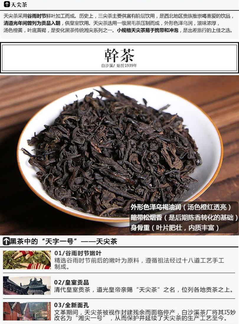 湖南安化黑茶正品白沙溪芽料散茶直泡天尖茶160g