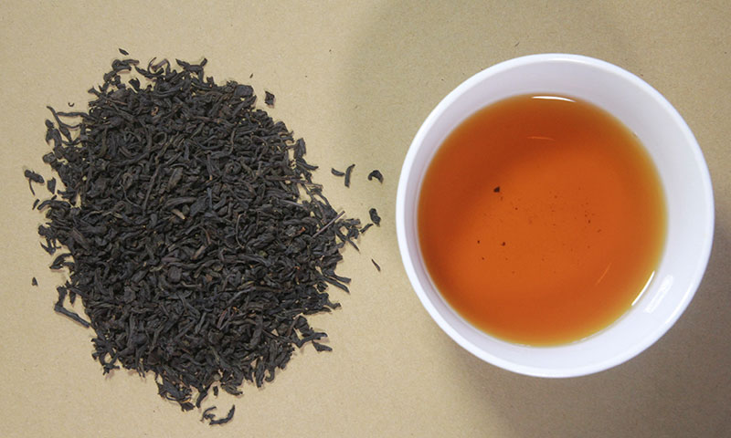 正山小種紅茶:條索緊實勻齊,色澤烏潤,湯色紅亮,有濃郁的松煙香,滋味醇厚。