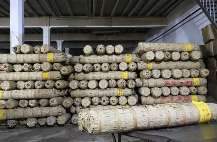 千兩茶是最易存儲(chǔ)的茶。千兩茶原生態(tài)的傳統(tǒng)包裝,與茶體一次成型。其外包裝選自安化本地三年以上、并在立夏后砍伐的楠竹篾片編織成千兩茶篾簍、棕片為第二層內(nèi)襯(起防塵、防雨、透氣作用)、粽葉為第三層內(nèi)襯(防漏、防串味),這三層包裝對(duì)茶葉不僅起著保護(hù)作用,而且與茶葉相互滲透,使得茶體品質(zhì)、茶味口感、茶品香氣有著提升作用,更有利于茶體的收藏儲(chǔ)存、運(yùn)輸陳化。