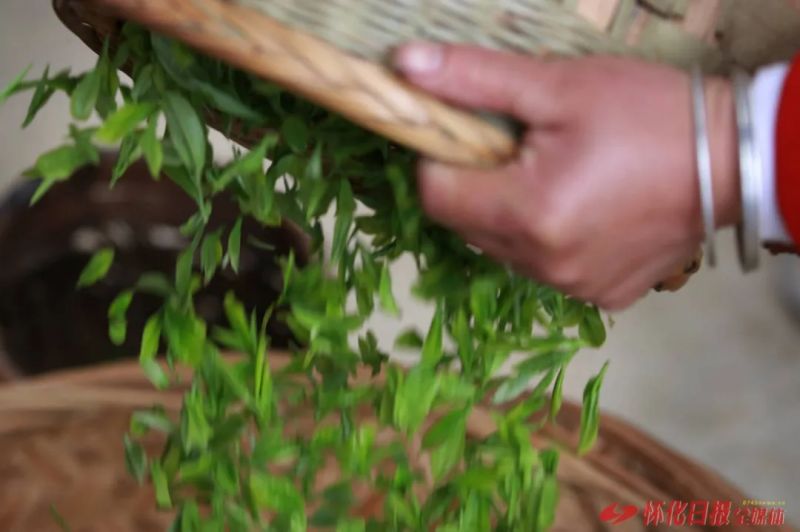 (當(dāng)天采下的嫩芽在簸箕內(nèi)攤開、晾干)