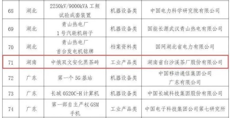 2024年,為深入學習貫徹習近平新時代中國特色社會主義思想,全面貫徹落實黨的二十大關于建設文化強國、推進新型工業(yè)化的戰(zhàn)略部署,用好紅色資源,賡續(xù)紅色血脈,講好共和國工業(yè)發(fā)展的故事,傳承弘揚工業(yè)文化和工業(yè)精神,以實際行動迎接中華人民共和國成立75周年,國家文物局、工業(yè)和信息化部聯(lián)合印發(fā)通知,部署開展“共和國印記—工業(yè)之光耀中華”主題活動。主要內容包括公布和推介一批代表性見證物,征集一批傳承紅色基因、弘揚工業(yè)精神的工業(yè)遺產(chǎn)保護利用典型案例,舉辦“共和國印記”專題展覽等。由集團白沙溪茶廠20世紀50年代生產(chǎn)的中俄雙文安化黑茶磚(俗稱“八字磚”)入選100項“共和國印記”見證物,并將在全國進行巡展。