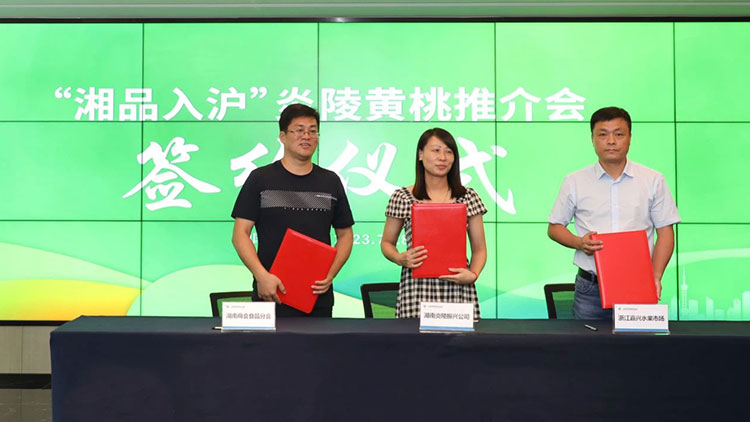 7月28日,湖南省供銷合作總社與上海市供銷合作總社戰(zhàn)略合作簽約儀式暨“湘品入滬”推介會(huì)在上海舉行。現(xiàn)場,上海企業(yè)、商會(huì)簽約采購湖南炎陵黃桃、湘茶產(chǎn)品意向金額1.57億元,“供銷力量”推動(dòng)著“湘字號”特色農(nóng)產(chǎn)品入滬提速升檔。