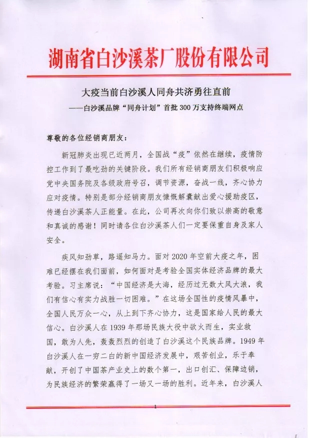 白沙溪品牌“同舟計(jì)劃”首批300萬支持終端網(wǎng)點(diǎn)