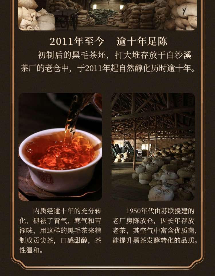 湖南正宗安化黑茶白沙溪2011年老料陳年貢尖茶湘尖880g