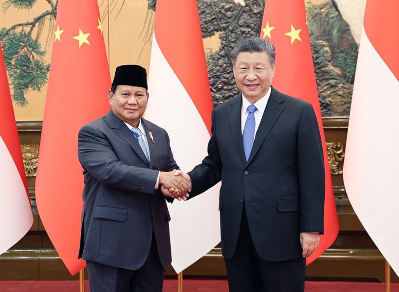 4月1日下午,國家主席習近平在北京人民大會堂同印尼當選總統(tǒng)普拉博沃舉行會談。新華社記者 劉彬 攝