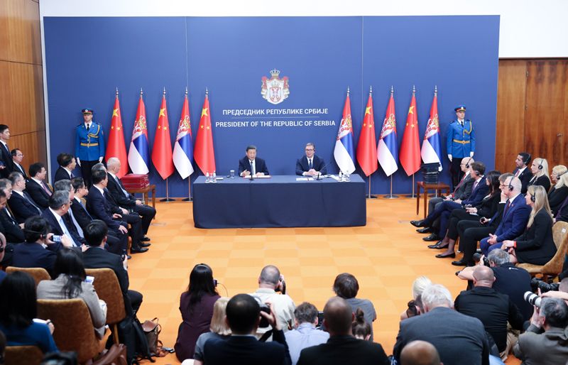 ——我們共同宣布構(gòu)建新時代中塞命運共同體,開啟中塞關(guān)系歷史新篇章。8年前,塞爾維亞成為中國在中東歐地區(qū)首個全面戰(zhàn)略伙伴。今天,塞爾維亞又成為首個同中國共同構(gòu)建命運共同體的歐洲國家,充分體現(xiàn)了中塞關(guān)系的戰(zhàn)略性、特殊性和高水平。