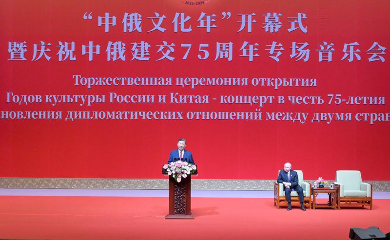 習近平指出,今年是中俄建交75周年。中俄關系四分之三個世紀的風雨歷程表明,不斷鞏固和發(fā)展中俄永久睦鄰友好、全面戰(zhàn)略協(xié)作、互利合作共贏,符合兩國和兩國人民的根本利益,順應國際社會期待和時代發(fā)展潮流,具有不可替代的重要意義?;マk主題年已經(jīng)成為中俄人文交流的優(yōu)良傳統(tǒng),也是兩國關系發(fā)展史上的特色和亮點,受到兩國人民普遍歡迎。去年,我和普京總統(tǒng)商定2024-2025年舉辦“中俄文化年”。今天,雙方正式啟動這一文化盛事。雙方將舉辦一系列豐富多彩的文化交流項目,進一步釋放兩國文化合作潛力,共同開創(chuàng)中俄文化交流的新未來。相信這將為中俄友好的世代傳承、為兩國人民的相知相親注入新動力。