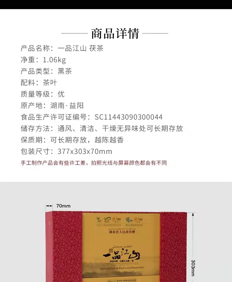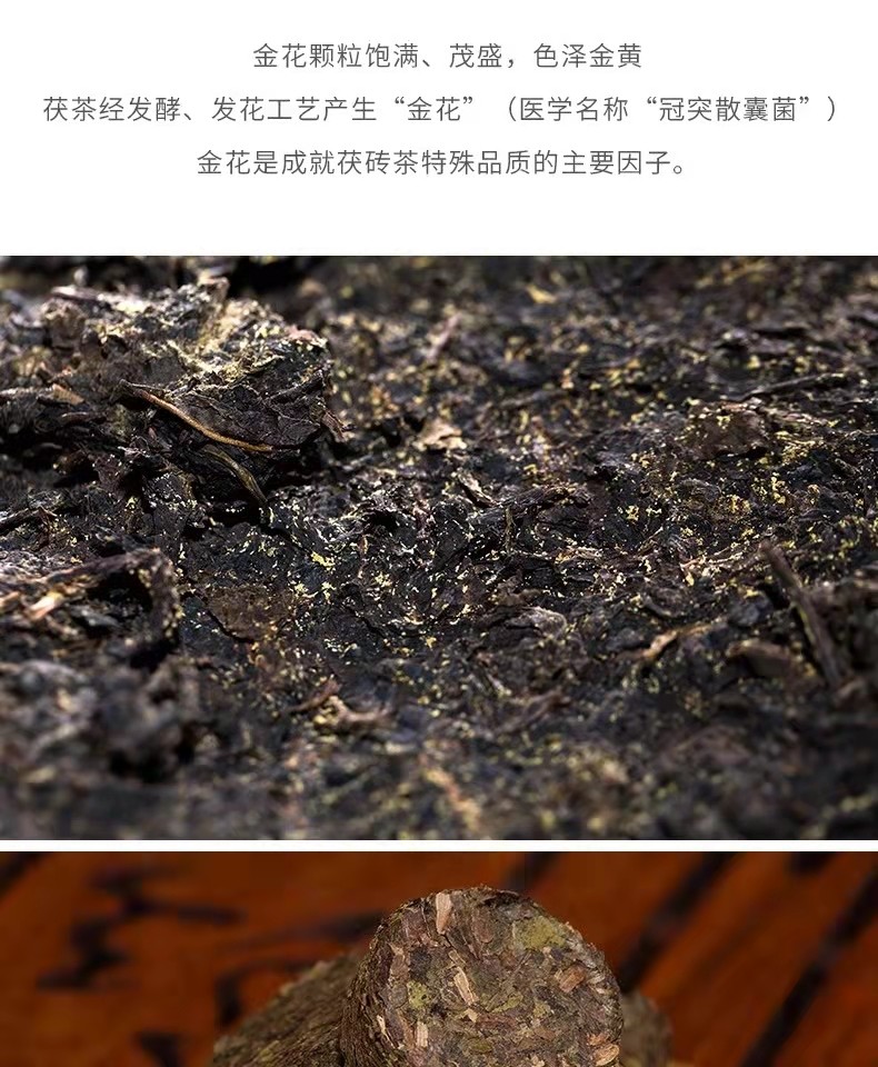 湖南安化黑茶湘益黑茶湖南特產(chǎn)一品江山獲磚益陽茶廠金花黑茶1.06kg