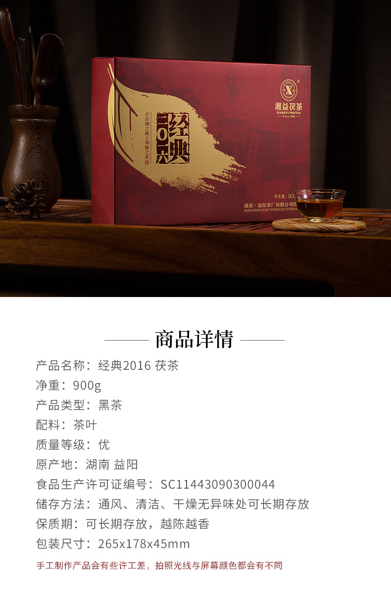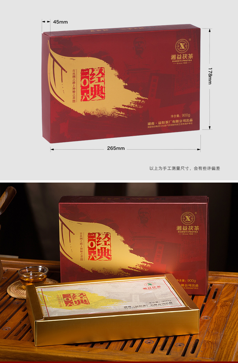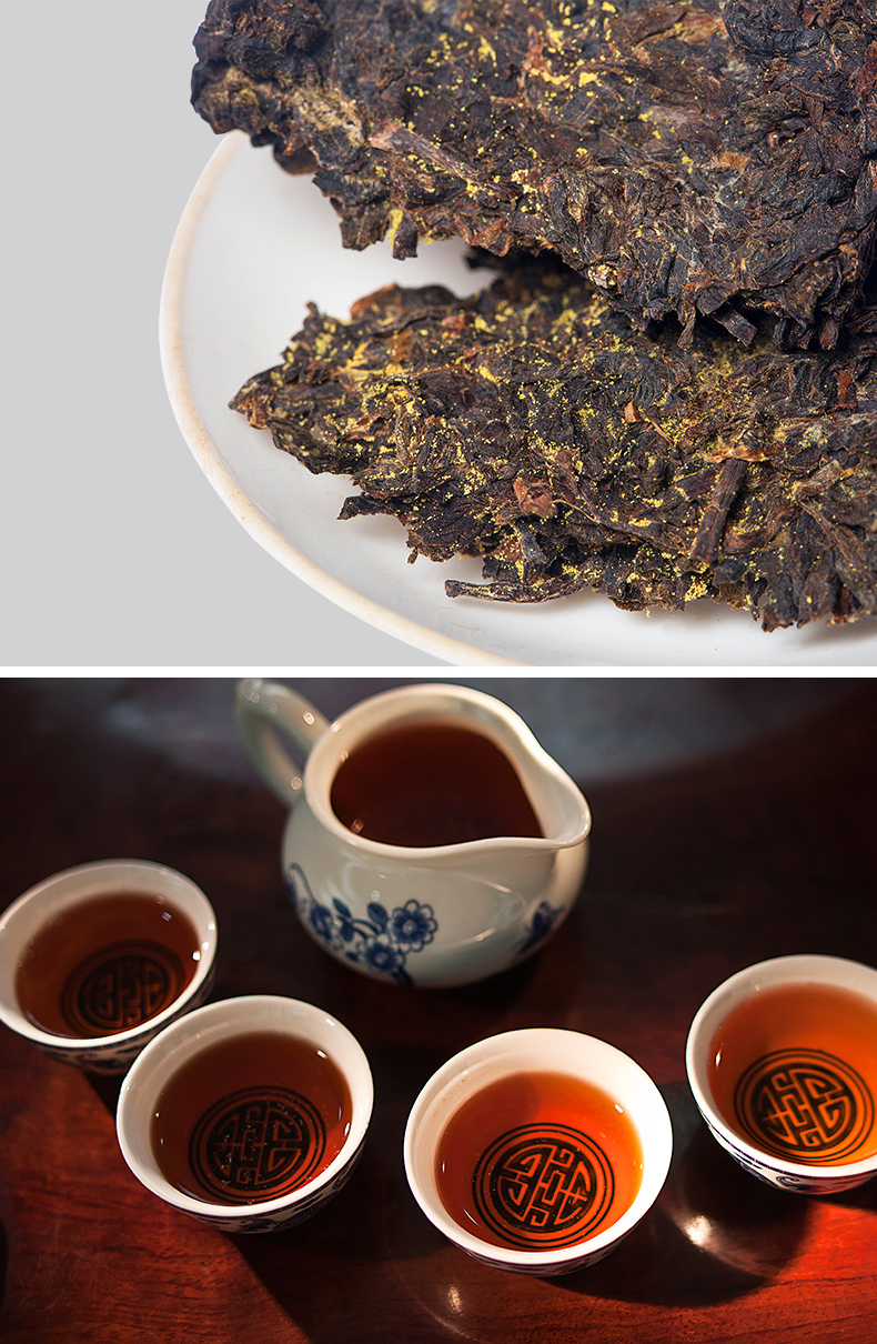 • 湘益茯茶900g經(jīng)典2016金花茯磚黑茶
